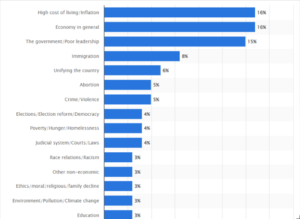 Statista.com, relying on recent Gallop survey data, offered one perspective of the nation’s priorities. But the top two items on their list were chosen by only16% of the sample! It is an interesting list but it tells us more about how disparate public opinion is than what our national directions should be.