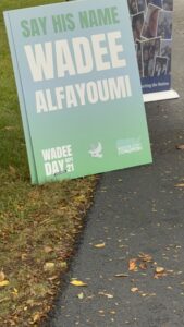 This morning, Wadee’s memory is a blessing because it renews our commitment to fight for what matters most…Peace in our community and in Palestine…Justice here and in Palestine…and an end to senseless hatred here and in Palestine.